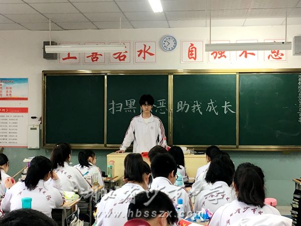 為了更好地促進(jìn)社會(huì)的繁榮與穩(wěn)定,積極響應(yīng)黨和國家關(guān)于開展掃黑除惡的專項(xiàng)活動(dòng),我校于2019年4月24日下午班會(huì)課組織開展了“掃黑除惡 助我成長”的主題班會(huì)。