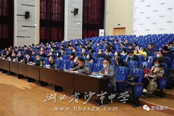 與會六校老師 3月28日下午兩點,沙市中學高二年級各學科備課組組長在趙文華副校長、魏遵平年長的帶領下,趕赴恩施高中參加湖北省部分重點高中六校協作體“YES”交流會。