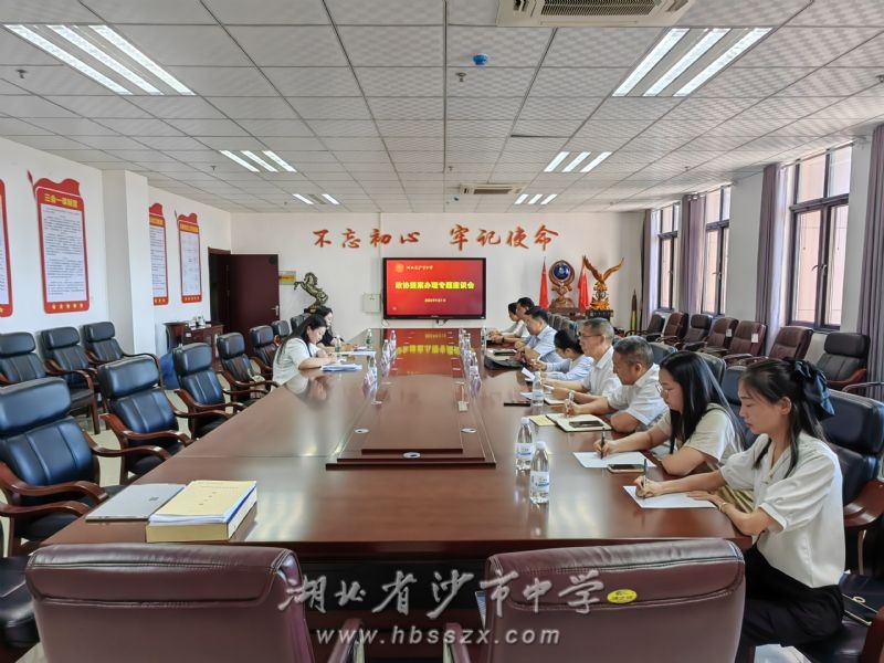 座談會現場 2023年9月1日下午,第六屆市政協委員易玲玲,市教育局基教科科長宋國亮,市婦聯家兒部部長賈宜平,沙北實驗學校黨委書記、校長何新陸等一行人到訪我校,針對市政協關于健康校園、心理健康、家庭教育三件政協提案辦理工作召集座談,征詢意見。沙市中學黨委委員、副校長胡直、唐年新,總務處副主任何婷,心理教師王里、雷明格參加了座談。