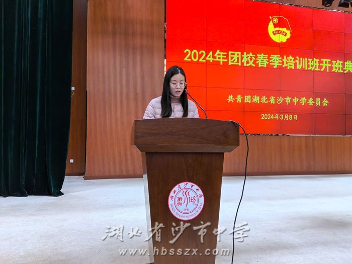 校團委副書記黃嘉懿上臺致辭,她對團校開班表示熱烈祝賀,同時也對學員們提出了幾點殷切的期望:要提高自身站位,堅定理想信念,以積極健康的心態去對待學習和生活,勇敢面對困難;要加強理論學習,提高自身素質,爭做德智體美勞全面發展的優秀少年;要珍惜團校學員的光榮,對自己嚴格要求,遵守校規校紀,在學習與生活各方面做好同學們的表率。