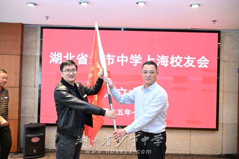 沙市中學黨委書記熊禮才為上海校友會授旗 沙市中學黨委書記熊禮才為上海校友會授旗,標志著上海校友會正式揚帆起航。熊書記強調了情感交流和校友合作的重要性,希望以此為契機,搭建平臺關懷校友,深化習坎精神;服務校友,強化習坎平臺;發動校友,扛起習坎擔當。并表示沙市中學始終致力于為校友提供溫暖如家的支持與幫助,共同推動校友會的高質量發展。