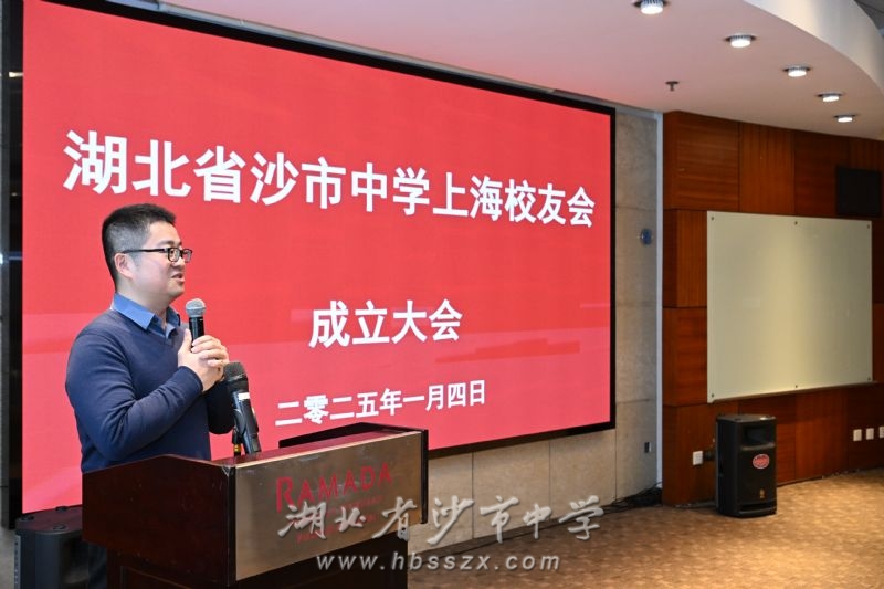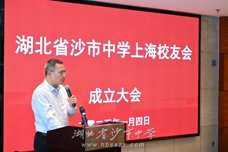 2025年1月4日,湖北省沙市中學上海校友會成立大會在上海浦東圓滿舉行。荊州市教育局黨組書記、局長裴毅、副局長莊小紅、招商辦主任王書華、沙市中學黨委書記熊禮才、校長徐善慧、副校長趙文華等領導出席活動,來自金融、科技、醫療、教育、服務等行業的70余名上海校友和嘉賓歡聚一堂。