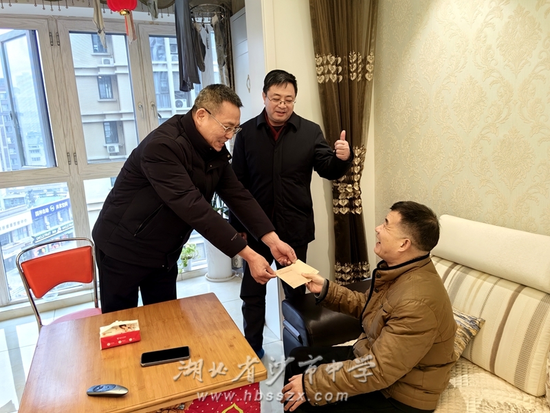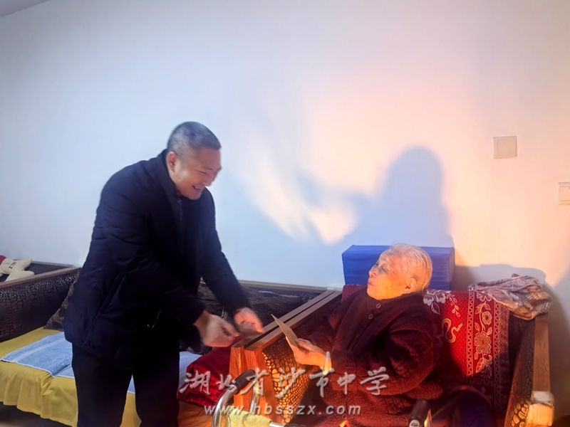 黨委委員、副校長潘磊慰問退休特級教師郭秋 2025年春節前夕,沙市中學領導積極組織開展“送溫暖”活動,為離退休教師和困難教職工送上關懷與祝福。1月23日,學校黨委書記熊禮才,黨委副書記、校長徐善慧,黨委副書記、紀委書記李義國,黨委委員、副校長胡直、唐年新、潘磊等校領導分成五組,對30名離退休教師和部分困難教職工家庭進行了走訪慰問。