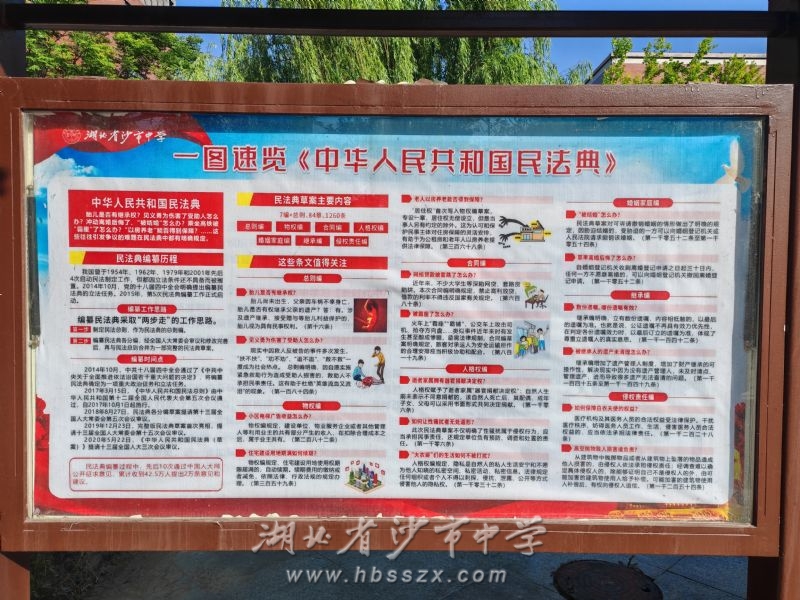 為深入學習宣傳《中華人民共和國民法典》,增強同學們的法治觀念,營造尊法、學法、知法、用法的良好氛圍,沙市中學積極組織開展了“民法典宣傳月”活動,形成了“人人學民法,處處講法治”的校園新風尚。