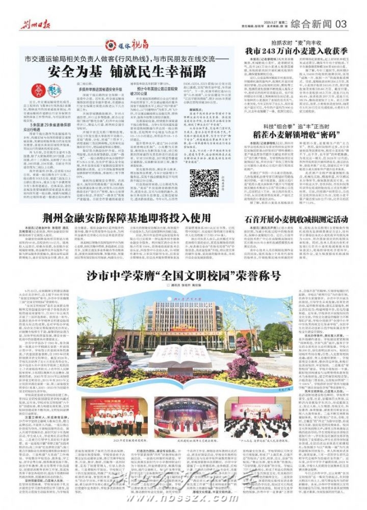 《荊州日報》2025年5月27日報道我校榮膺"全國文明校園"榮譽稱號