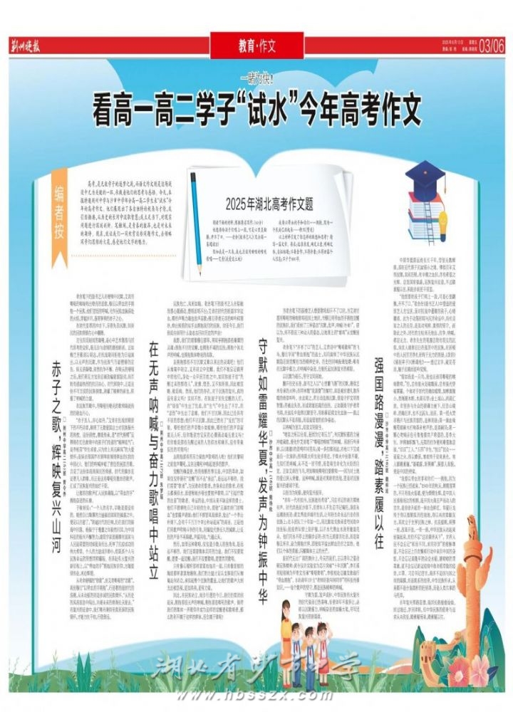 《荊州晚報》2025年6月13日刊登我校高一高二學子試水高考作文