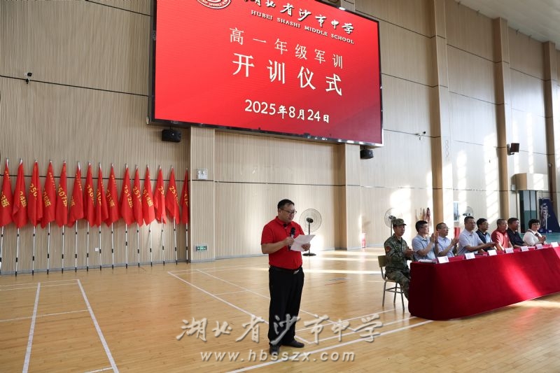 盛夏的習(xí)坎園,暑氣浸著朝氣,旌旗裹著風(fēng)吟,處處涌動著青春的蓬勃張力。8月24日上午7時,沙市中學(xué)2025級高一新生軍訓(xùn)開訓(xùn)儀式在學(xué)校體育館隆重舉行,儀式由學(xué)工處主任李昌坤主持。學(xué)校領(lǐng)導(dǎo)、全體軍訓(xùn)教官、高一年級全體班主任、家長代表與2025級全體高一新生共同見證這一熱血時刻。