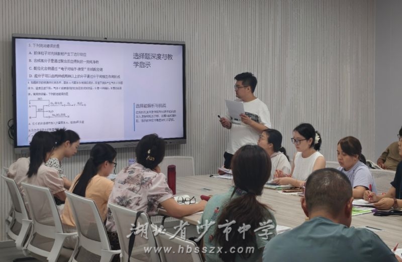 為精準(zhǔn)把握新高考命題趨勢與評分標(biāo)準(zhǔn),切實(shí)提升復(fù)習(xí)備考效率,8月25至29日,沙市中學(xué)組織召開2025年高考閱卷經(jīng)驗(yàn)交流分享會,語文組高倫強(qiáng)、數(shù)學(xué)組朱鑫、英語組沈金京、物理組余小路、化學(xué)組張昊鑰、生物組彭瑾瑤、政治組李燕成七名優(yōu)秀教師分享高考閱卷經(jīng)驗(yàn),各教研組教師參與學(xué)習(xí)與研討。