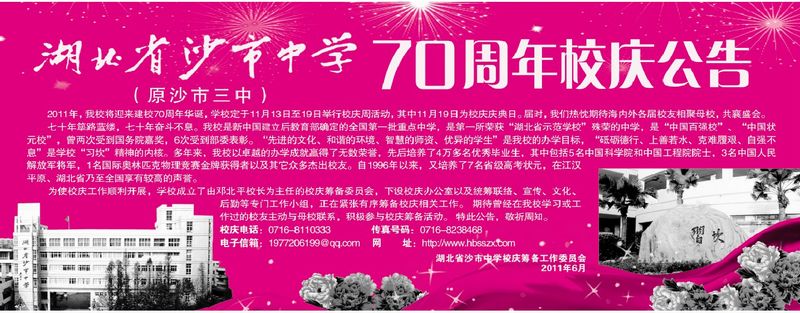 《荊州日?qǐng)?bào)》(2011年6月7日第1版)報(bào)道我校七十周年校慶公告